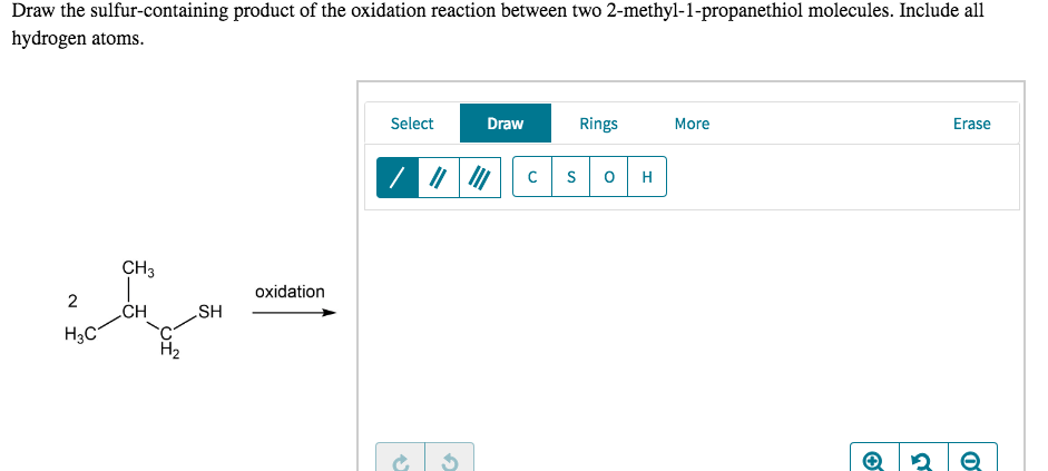 Draw all hydrogen atoms CH3 HacCHSoxidation CH Draw the sulfur-containing product of the following oxidation reaction between two 2-methyl-1-propanethiol molecules. Free unlimited access for 30 days limited time only. Draw all hydrogen atoms. Draw all hydrogen atoms. CH-CH CH - CH-S-S-CH-CH CH - CH 2H 2e. Shantejahtierr7578 is waiting for your help.